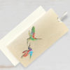 Oryginalne zaproszenie z najnowszej kolekcji wykonane z wysokiej jakości białego metalizowanego papieru. Na okładce widnieją dwa wycięte laserowo kolibry. Kontury ich oraz gałązka zostały wytłoczone. Najciekawszym elementem zaproszenia jest kolorowy nadruk wykonany na pierwszej stronie wkładki. Przedstawia on dwa kolibry na tle kwiatów, które nadają tło wyciętym w okładce ptaszkom. Wkładka do nadruku matowa w kolorze białym. Zaproszenie wysyłamy w formie gotowej do wręczenia. Zaproszenie wykonane z ogromną starannością i dbałością o detale. Precyzyjny nadruk, dokładność wykonania oraz wysokiej jakości papier.