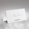 Winietka na stół z najnowszej kolekcji wykonana z metalizowanego papieru w kolorze beżowym. Na dole winietki wycięty został ozdobny wzór kwiatowy. Nadruk nazwisk bezpośrednio na winietce