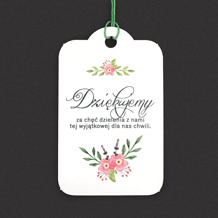 Do podziękowań dodawany jest zielony woskowany sznurek widoczny na drugim ujęciu.